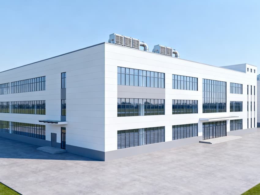 本項目為適配生物醫藥產業發展的標準化廠房,聚焦生物制藥GMP核心要求,兼顧本地沙塵防護、溫差調控需求。外立面采用密閉式抗風幕墻+防塵涂層設計,有效阻隔外部沙塵侵入,保障內部潔凈環境穩定。?