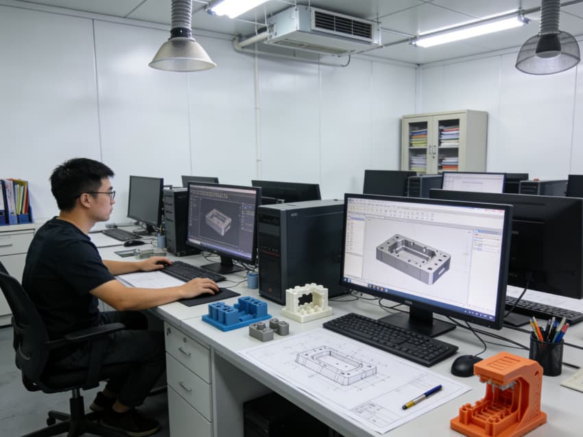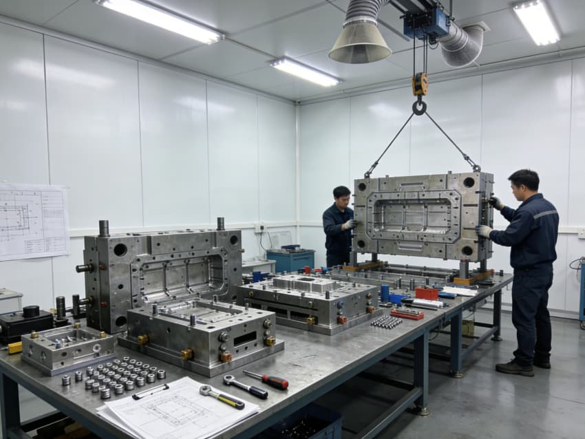 白色墻面采用工業(yè)級(jí)潔凈涂層,無(wú)縫拼接搭配圓弧陰陽(yáng)角設(shè)計(jì),杜絕積塵死角,減少粉塵對(duì)模具精度的影響。車間劃分加工區(qū)、檢測(cè)區(qū)、調(diào)試區(qū)等功能區(qū)域,布局科學(xué)合理,加工區(qū)增設(shè)阻尼減震墊層降低設(shè)備振動(dòng)干擾,檢測(cè)區(qū)預(yù)留精密儀器安裝位與恒溫調(diào)控接口,各區(qū)域均配備標(biāo)準(zhǔn)化管線預(yù)埋與設(shè)備固定點(diǎn)位,全方位保障模具制造的精準(zhǔn)性與穩(wěn)定性。