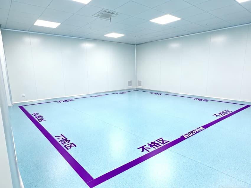 車間整體風格潔凈統一,地面采用淺藍色耐腐抗菌環氧材質,無縫拼接工藝杜絕衛生死角,耐消毒藥劑侵蝕且易清潔;四周白色抗菌墻壁經納米涂層處理,粉塵附著率極低,配合頂部高效空氣過濾系統,穩定維持萬級潔凈度,契合醫藥用品生產對無菌環境的嚴苛要求。