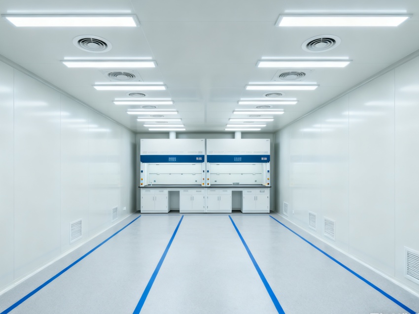 實驗室潔凈度嚴格遵循萬級標準(ISO8級),每立方米空氣中≥0.5μm微粒數(shù)≤352000個,采用初效-中效-高效三級空氣過濾系統(tǒng),配合垂直層流送風設計,實現(xiàn)每小時20-25次空氣置換。室內墻面采用耐腐蝕潔凈彩鋼板,地面為PVC無菌卷材,所有接縫做密封處理;溫度控制在22±2℃、相對濕度50±5%RH,部分區(qū)域維持5-8Pa負壓,有效防止交叉污染,符合生物安全實驗室建設規(guī)范。