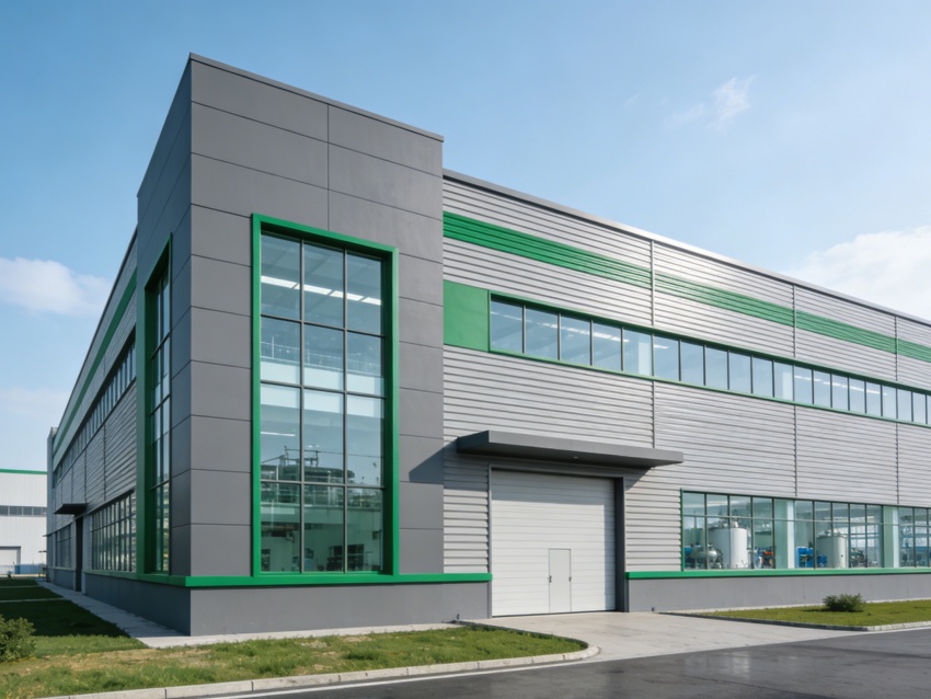 本次呈現(xiàn)的生物制藥生產(chǎn)車間,整體風(fēng)格嚴(yán)謹(jǐn)統(tǒng)一,精準(zhǔn)適配生物制藥無(wú)菌、潔凈的核心生產(chǎn)需求。廠房外立面采用淺灰色工業(yè)板材搭配高密封玻璃幕墻,既彰顯生物制藥場(chǎng)所的專業(yè)沉穩(wěn),又保障建筑的保溫隔音與采光性能,入口區(qū)域預(yù)留風(fēng)淋室及無(wú)菌緩沖間位置,從源頭把控潔凈門檻。