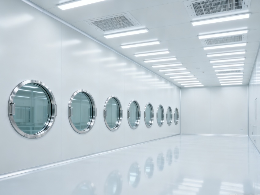 材料選用兼顧潔凈與維護(hù):地面鋪設(shè)雙層環(huán)氧自流平,底層強(qiáng)化抗壓,面層抗污處理,常規(guī)清潔便捷;墻面采用卡扣式彩鋼板,支持單塊拆卸,降低維護(hù)成本;門窗配備氣密平移門、自動(dòng)閉門器及密封膠條,隔絕外界污染。?